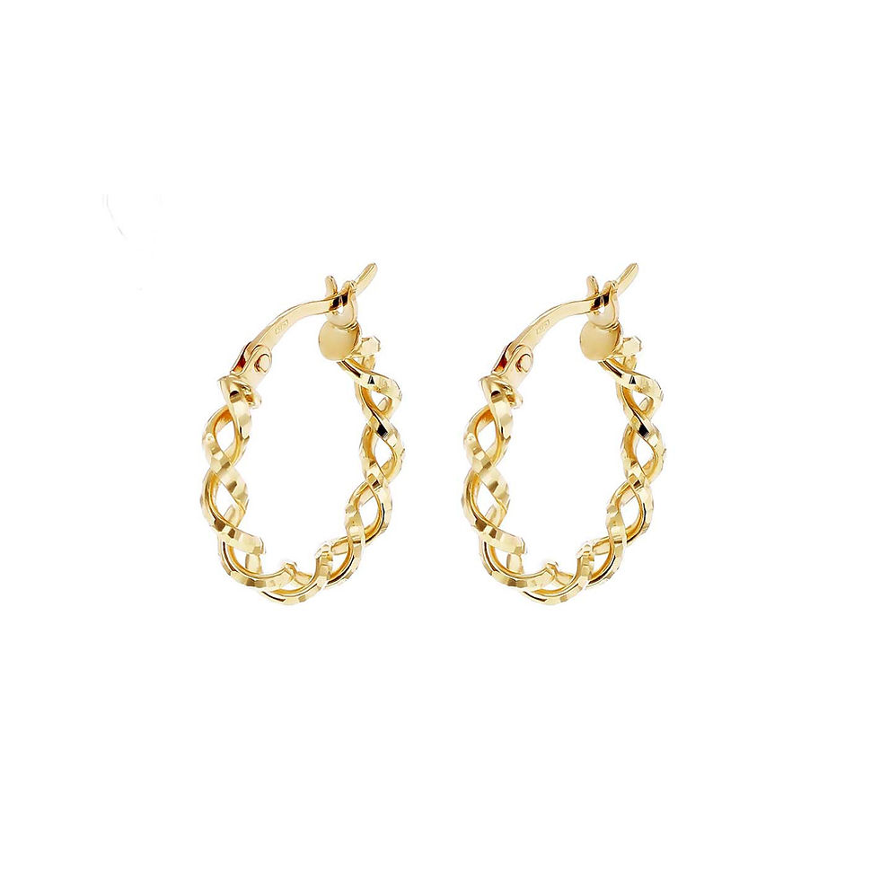 Brincos de argola com corte de diamante torcido em ouro amarelo 9 quilates